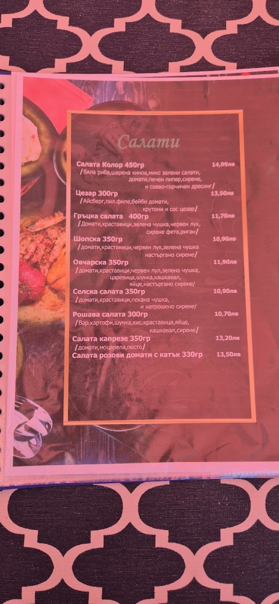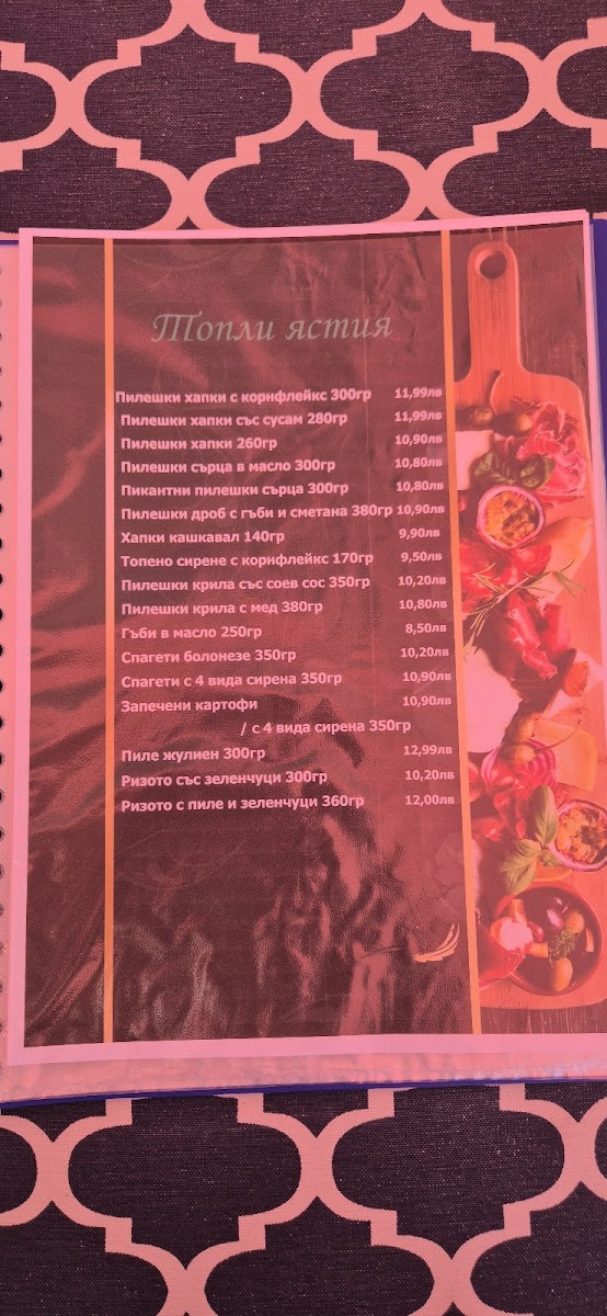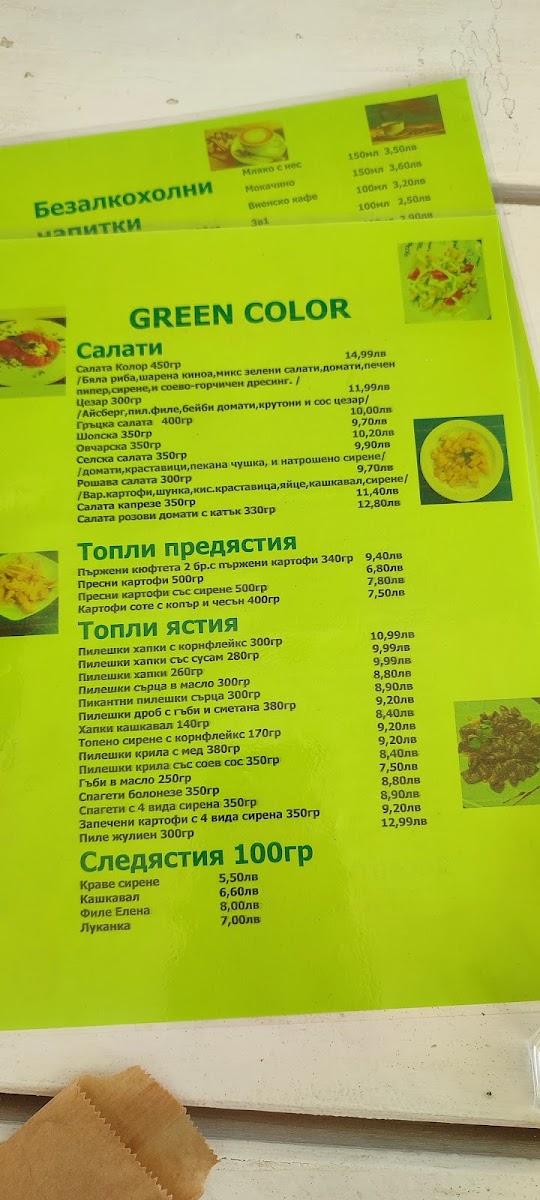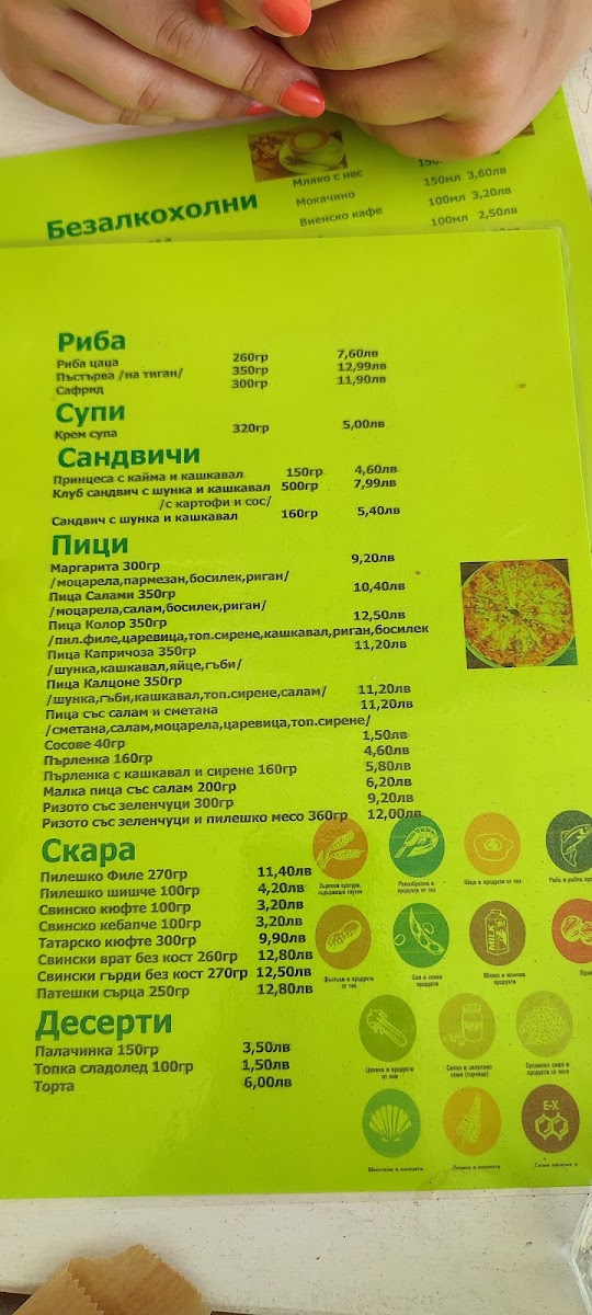The menu at Green Color 4 Край Реката leaves a clear impression of a casual, comfort-focused restaurant that blends familiar Bulgarian flavors with easygoing, everyday choices. Dishes like Цаца И Пържени Картофи immediately set the tone, offering a simple but satisfying combination that works well as a shared plate or a relaxed main. The presence of Пица, including the well-known Капричоза, adds variety and makes the menu approachable for different tastes, while Супа provides a lighter, warming option that balances the fried and baked items. For those who enjoy bold flavors, Пикантни Пилешки Сърца stand out as a more adventurous choice, pairing well with a cold Бира for a complete, no-frills dining experience. Classic sides such as Пържени Картофки and hearty bites like Pържени Кюфтета reinforce the menu’s focus on familiarity and value. Freshness is represented through Salata, which helps round out the heavier dishes, while Палачинка offers a simple, comforting way to finish the meal. Overall, the menu feels cohesive and practical, emphasizing recognizable dishes, balanced variety, and straightforward enjoyment rather than complexity or experimentation.